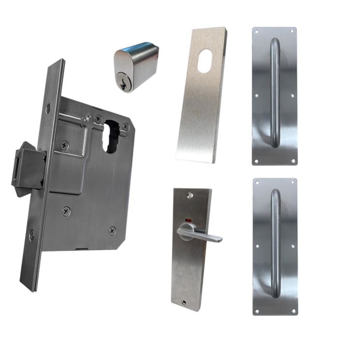 60mm SLIDING Mortice Lock KIT6 (INDICATING DA & CYL.) - Inc. Lock, Pull Plates, Furniture & Cylinder