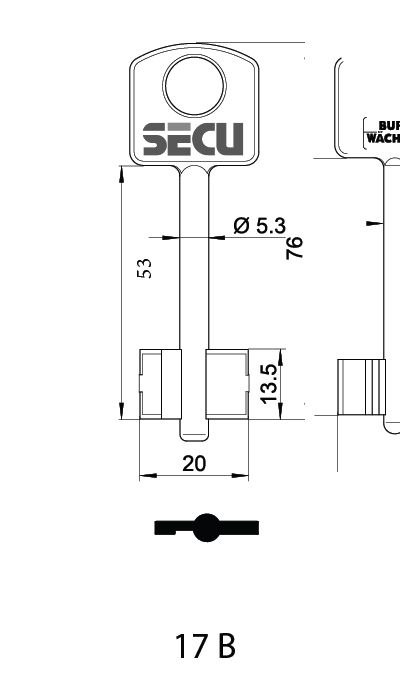 BURG WACHTER KEY BLANK to suit 'Point Safes' : Series - S - OLD