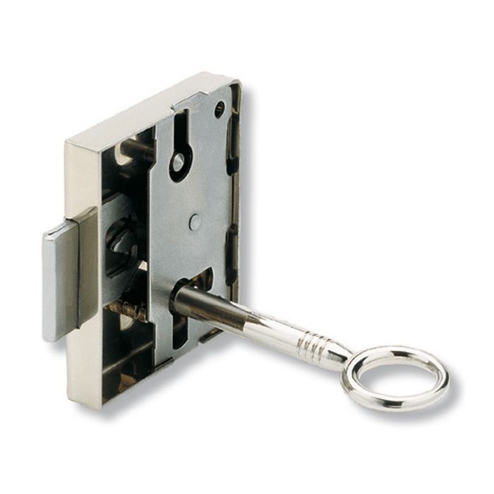 BURG-WÄCHTER Furniture/Cabinet Rim Lock. This compact and durable lock can be used on a variety of lockable furniture pieces and it's versatile design allows both left and right handed mounting.