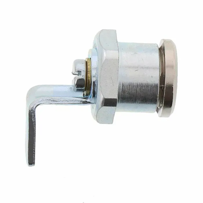 The BURG-WACHTER Art. ZS-77-H-SB. An all-round cam lock made of high-strength nickel-plated zinc diecast, disk cylinder with reversible key, cam adjustable at an angle of 90° with fixing nut. Each lock is supplied with two working keys and a single hinged shaped cam.