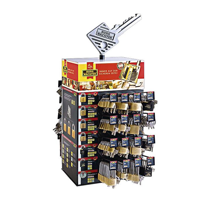 The BURG-WÄCHTER 'Mechanical Security' Display is the Silent Salesman in your shop.