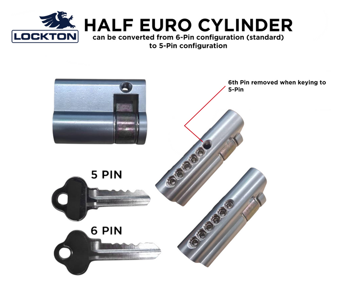 LOCKTON 496-5-SC, Half EURO fixed cam cylinders are a 6pin C4 cylinder, Suitable for use in fixed cam locks that require a Half EURO Fixed cam cylinder.