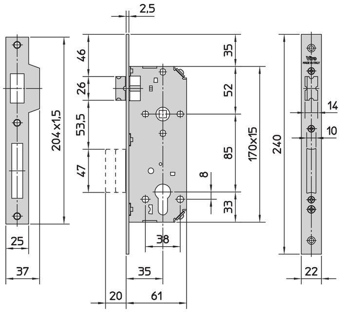 VIRO Art. 7435-35-2-9 Double Throw Euro Mortice Lock.