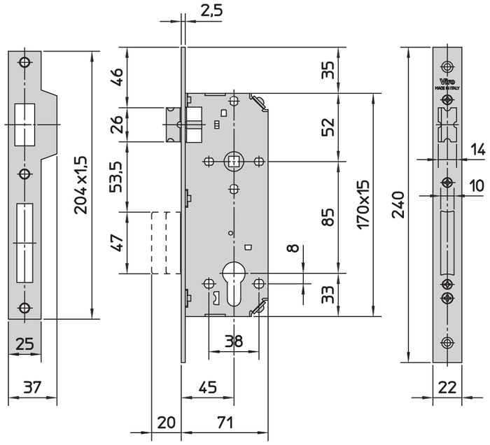 VIRO Art. 7435-45-2-9 Double Throw Euro Mortice Lock.