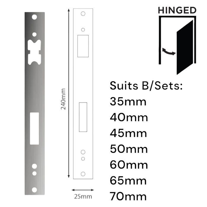 • Suits: 35 - 70mm Backset 'E-Series' Hinged Mortice Locks (See RELATED PRODUCTS)
