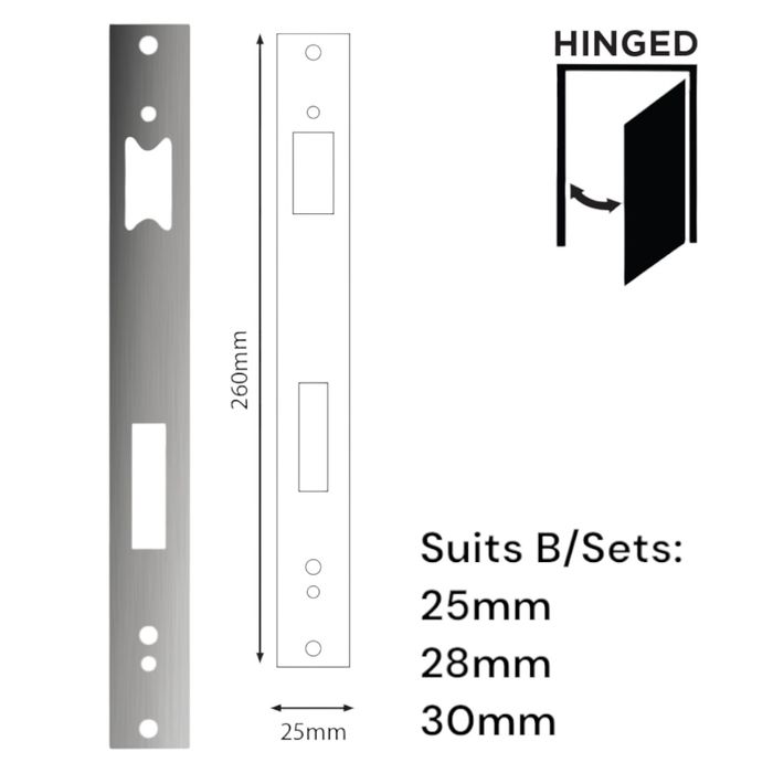 - Suits: 25 - 30mm Backset 'E-Series' Hinged Mortice Locks (See RELATED PRODUCTS)