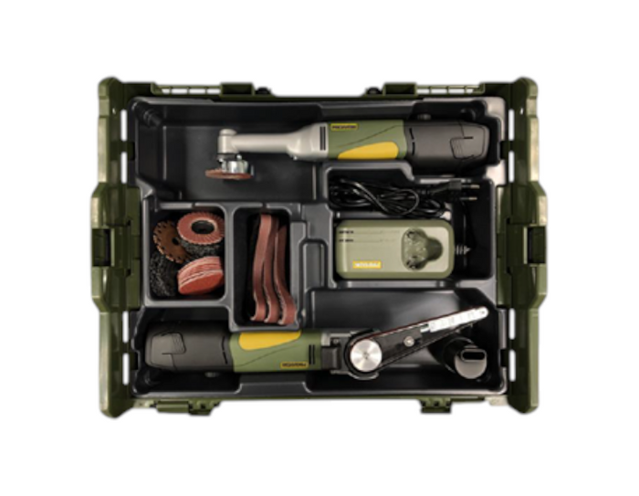 PROXXON - WOOD TREATMENT KIT - Incl. 2x Handheld Tools, Battery Charger & Various Access.