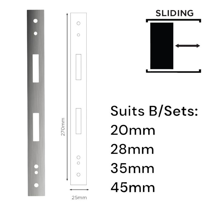 • Suits: 20 - 45mm Backset 'E-Series' Sliding Mortice Locks (See RELATED PRODUCTS)