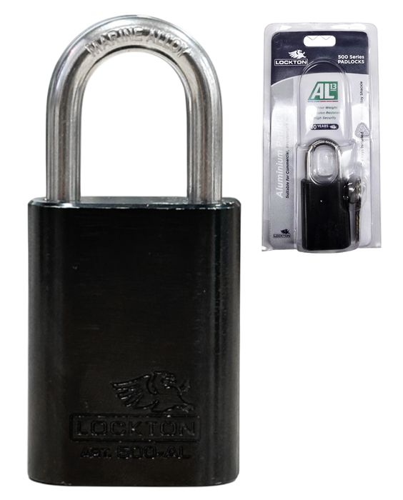 The LOCKTON Art. 500-AL/40-BK-KD-HP 40mm Keyed to Differ Padlock - In Hang Packaging.