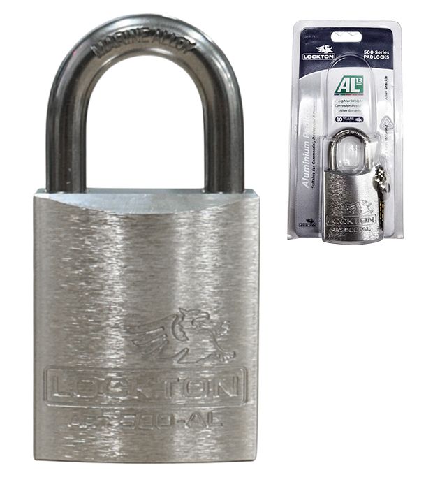 The LOCKTON Art. 500-AL/45-SI-KD-HP 45mm Keyed to Differ Padlock - In Hang Packaging.