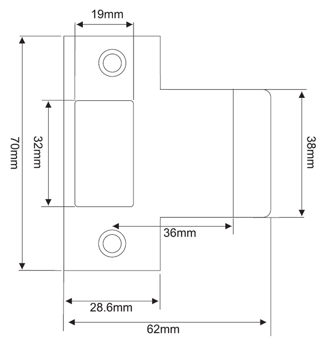 LOCKTON Art. STML60-EXT-36 Extended Mortice Lock Strike, designed to suit LOCKTON Art. SG-ML60, SG-ML95 and other Mortice Locks (see RELATED PRODUCTS).