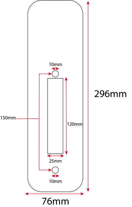 This scar plate will cover cutouts and painting lines from previous Lockset Installations that are less than 76mm wide (75mm Rose Knob & Lever Sets).