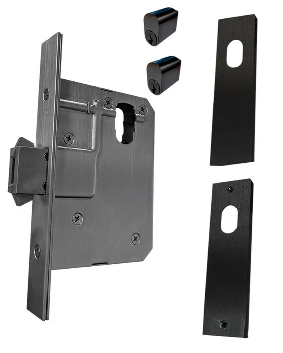60mm SLIDING Mortice Lock KIT4 (DOUBLE CYL.) - Inc. Lock, Furniture & Cylinders *Matte Black*