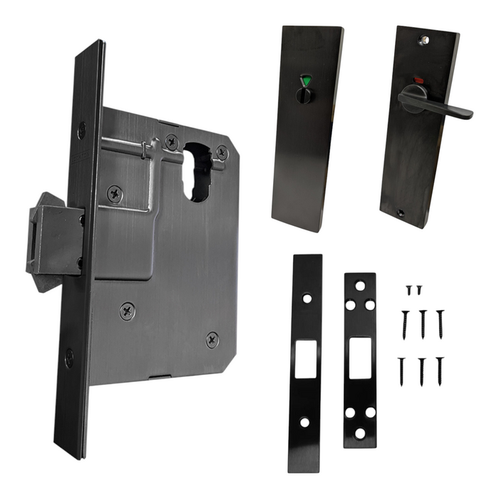 60mm SLIDING Mortice Lock KIT7 (INDICATING DA TOILET) - Inc. Lock & Furniture *Matte Black*