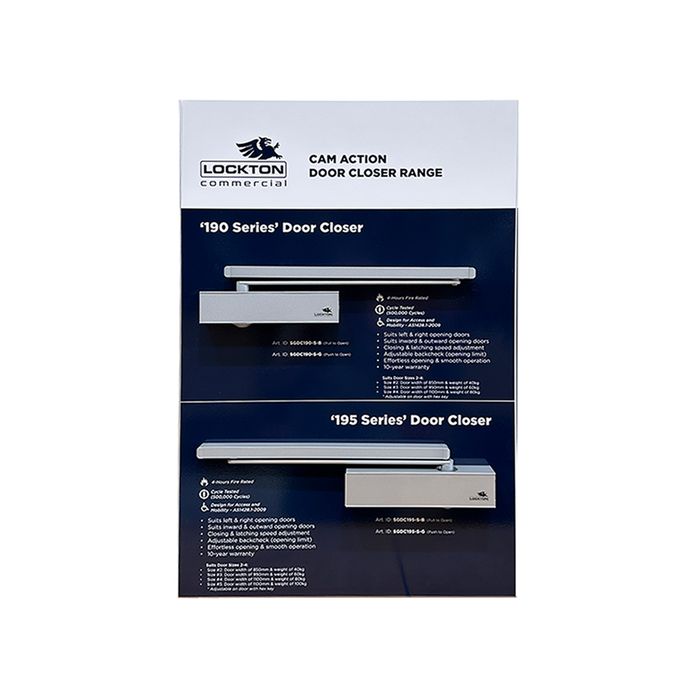 'Commercial' DISPLAY BOARD - DOOR CLOSERS (CAM) - Graphic Product Info & Related Display Stock
