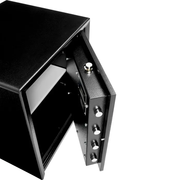 - Key pad protrudes 15mm & handle protrudes 63mm only when pulled out to open safe