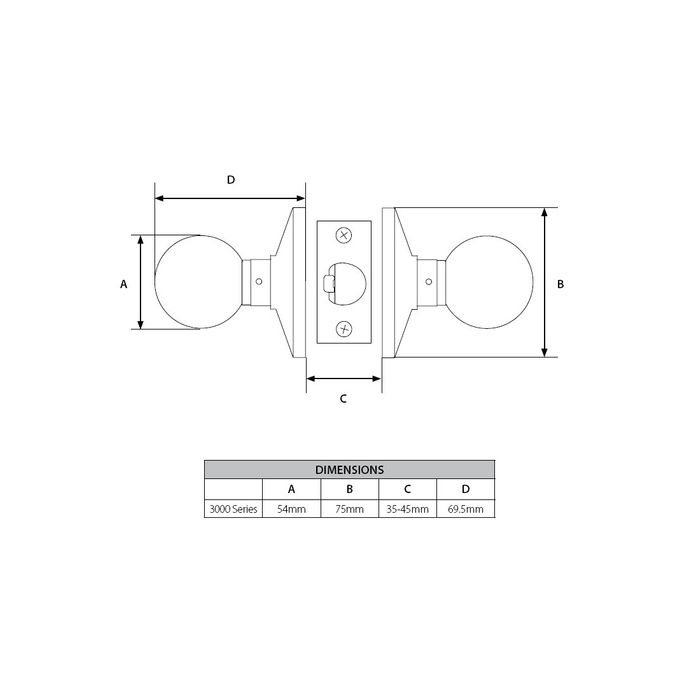 '3000 Series' KNOBSET - LATCHING HALF SET (70mm B/Set)