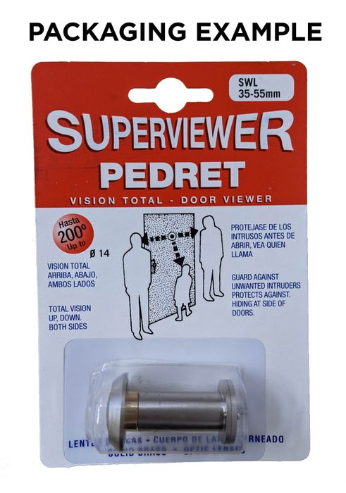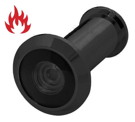 The PEDRET 'Super Viewer' 200° door viewer has a 2-hour Fire Rating. Featuring a solid Brass body, Black finish with special Fire resistant lenses and is suitable for door thickness between 35-60mm.