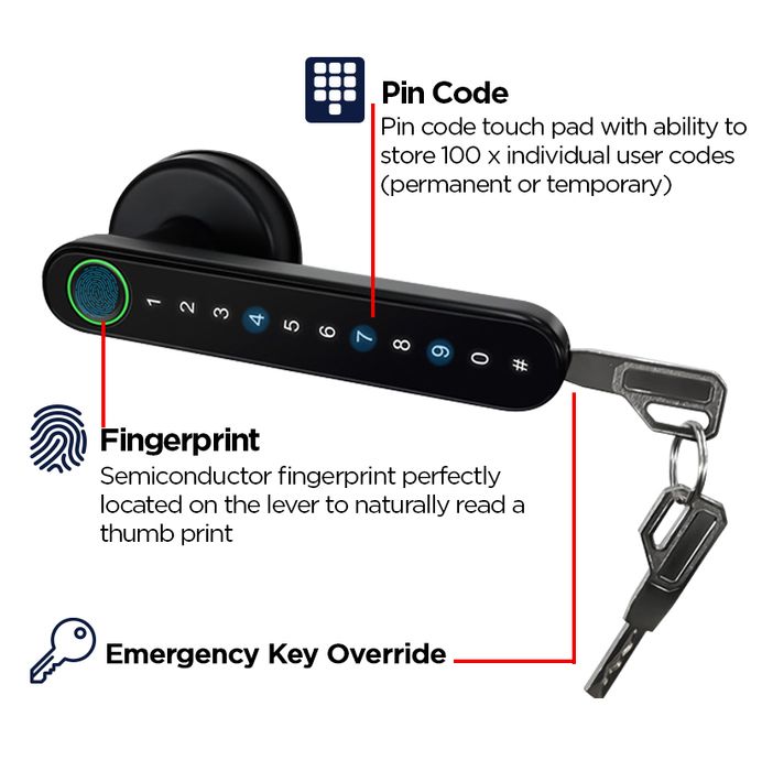 - Can store up to 100 x Individual User Codes and Fingerprints