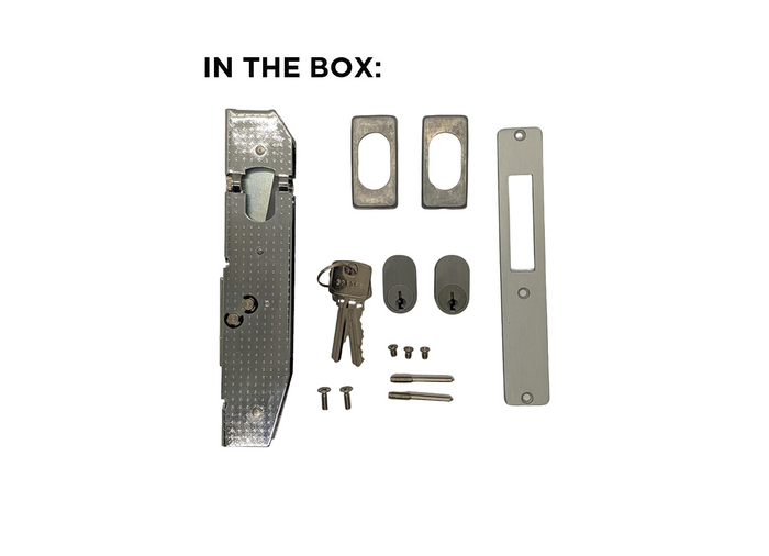 The lock is also supplied with all necessary fixing hardware and escutcheons for the cylinders.
