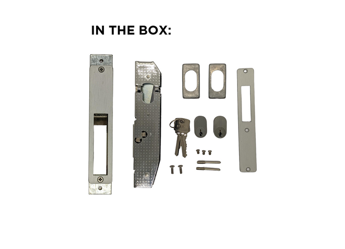 The lock is also supplied with all necessary fixing hardware and escutcheons for the cylinders.